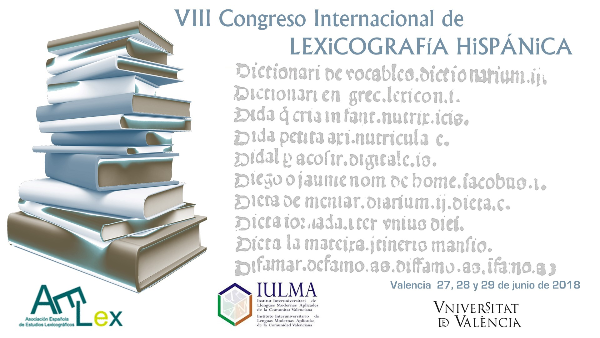 VIII Congreso Internacional de Lexicografía Hispánica de la Asociación Española de Estudios Lexicográficos (AELex), organizado por el Instituto Universitario de Lenguas Modernas Aplicadas (IULMA) de la Universitat de València. El Congreso tendrá lugar en Valencia los días 27, 28 y 29 de junio de 2018.